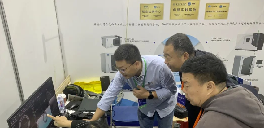 展会期间,福柯斯携FXO-CT1000通用型高精密桌面式CT设备到现场展示,吸引了众多航空航天领域的老师和同行驻足参观、交流。